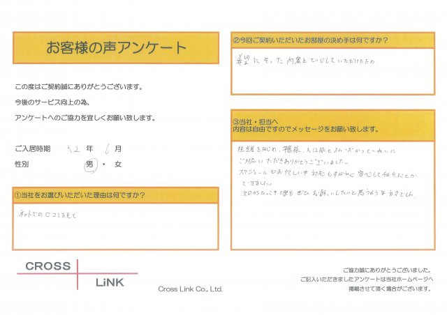 福岡・博多の賃貸を仲介手数料無料でご紹介|クロスリンク 博多店 > お客様の声一覧 > H様(2020年6月ご入居)