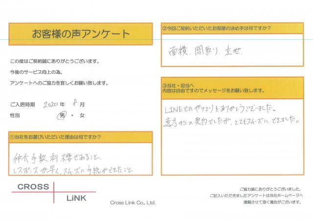 福岡・博多の賃貸を仲介手数料無料でご紹介|クロスリンク 博多店 > お客様の声一覧 > T様(2020年8月ご入居)