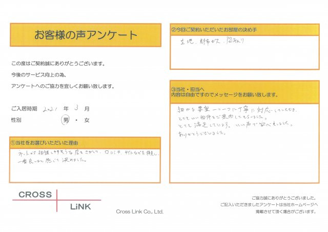 福岡・博多の賃貸を仲介手数料無料でご紹介|クロスリンク 博多店 > お客様の声一覧 > A様(2021年3月ご入居)