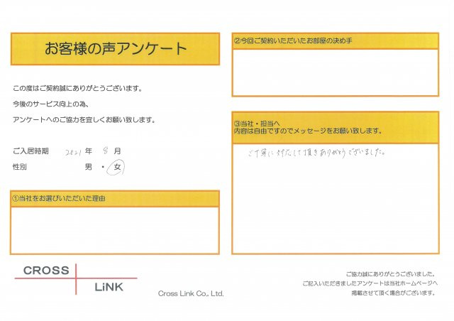 福岡・博多の賃貸を仲介手数料無料でご紹介|クロスリンク 博多店 > お客様の声一覧 > F様(2021年7月ご入居)