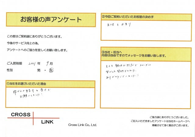福岡・博多の賃貸を仲介手数料無料でご紹介|クロスリンク 博多店 > お客様の声一覧 > K様(2021年9月ご入居)