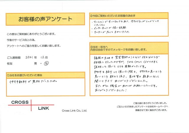 - ・マンションでオートロックもあり、セキュリティがしっかりしていたこと。