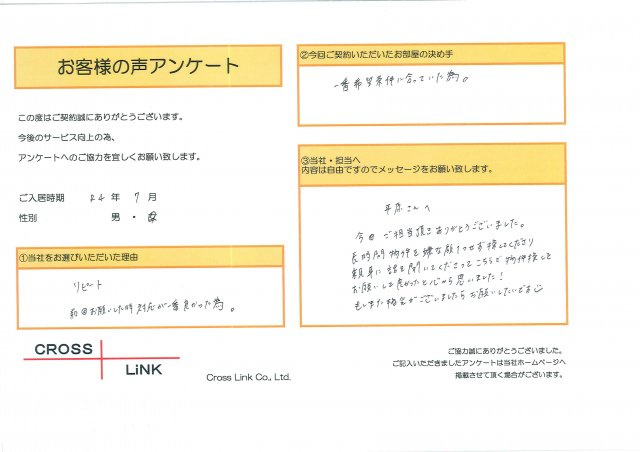 福岡・博多の賃貸を仲介手数料無料でご紹介|クロスリンク 博多店 > お客様の声一覧 > I様(2022年7月ご入居)