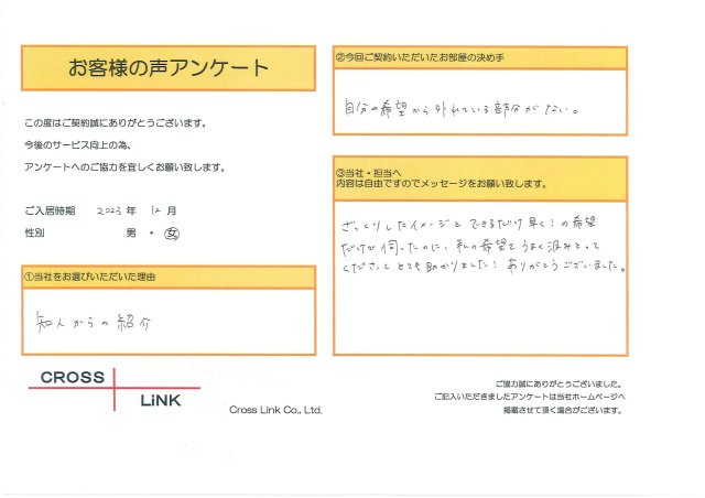 福岡・博多の賃貸を仲介手数料無料でご紹介|クロスリンク 博多店 > お客様の声一覧 > O様(2023年12月ご入居)