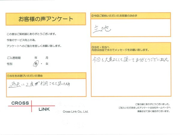 福岡・博多の賃貸を仲介手数料無料でご紹介|クロスリンク 博多店 > お客様の声一覧 > H様(2024年5月ご入居)